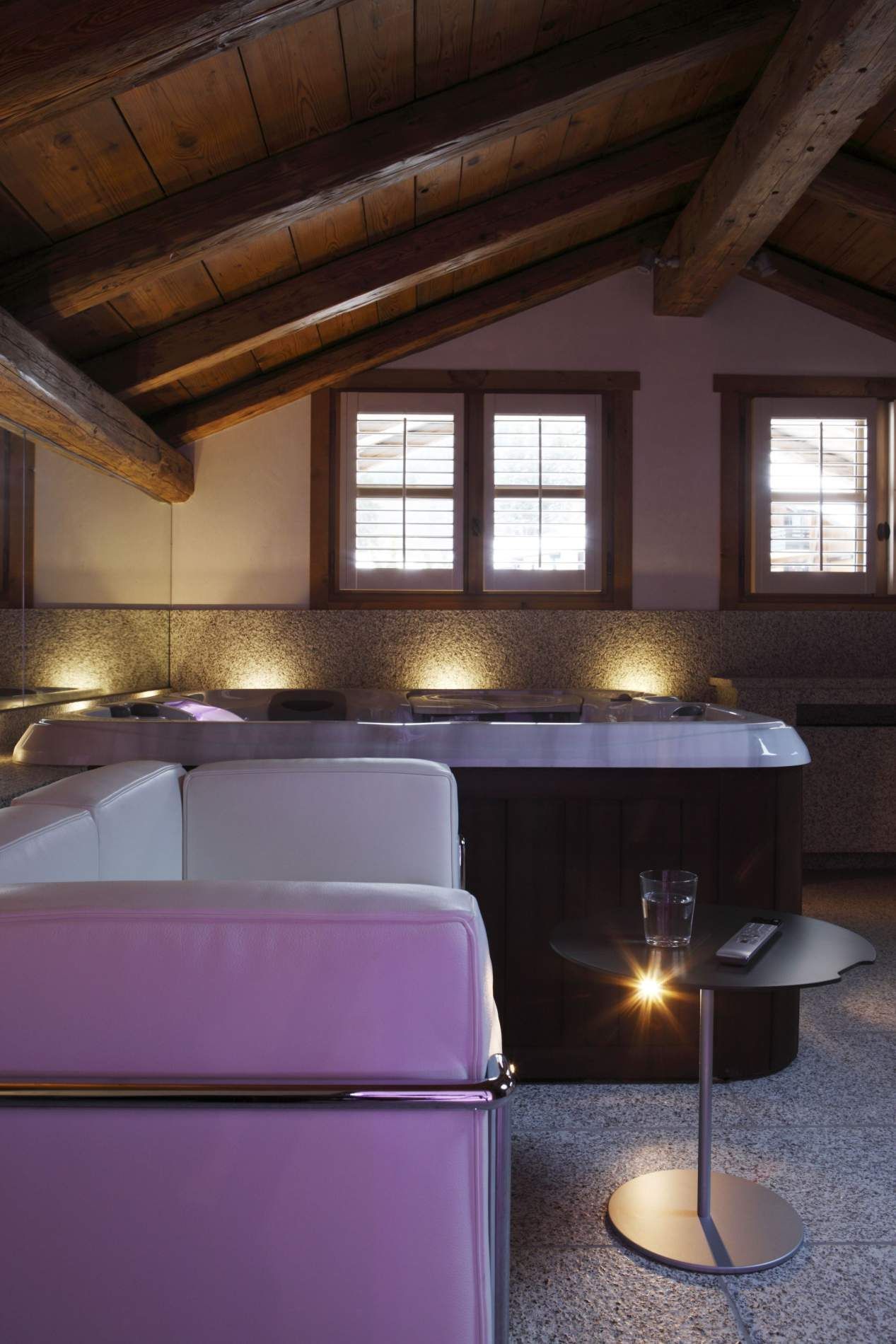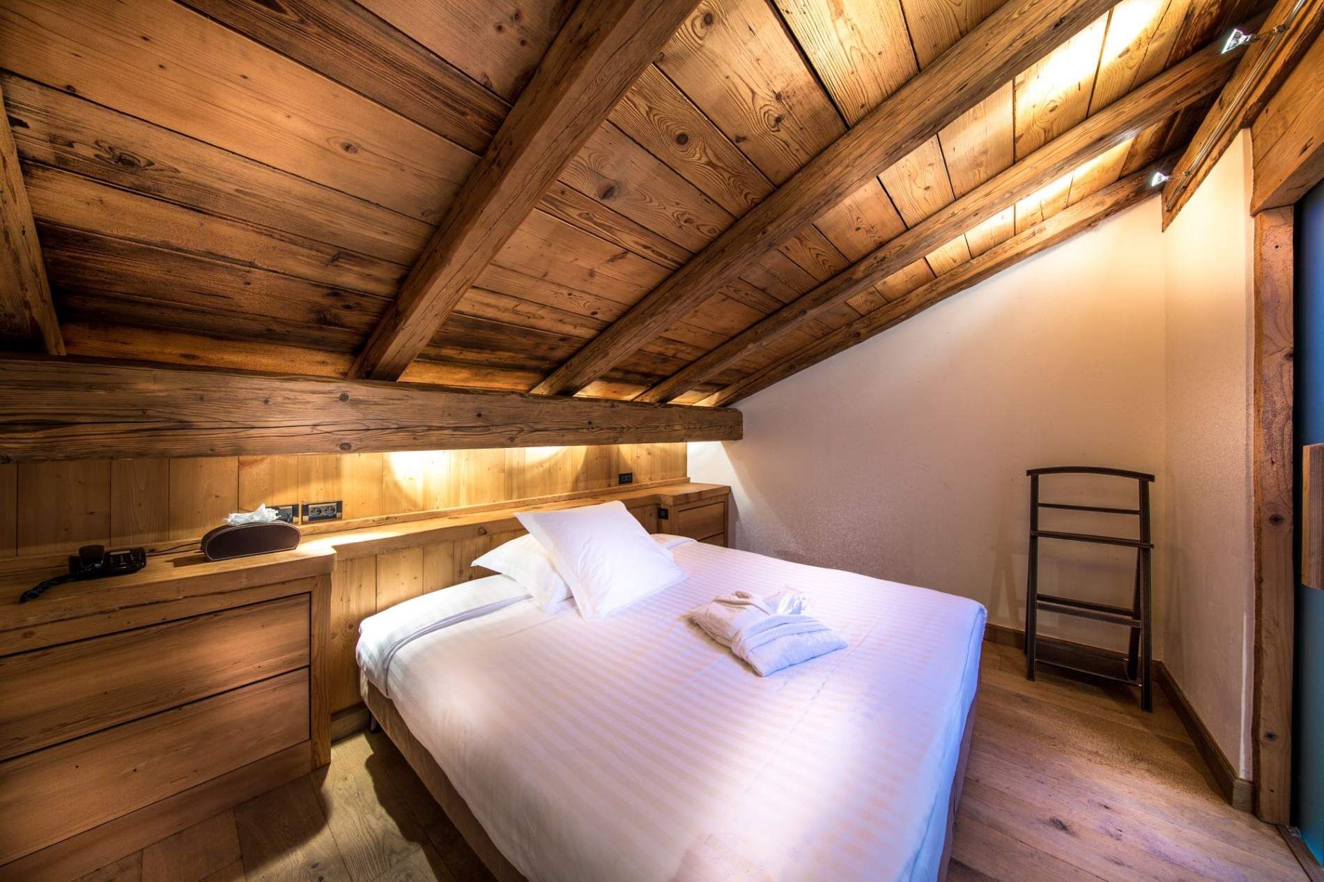 The hotel features 10 elegantly designed rooms and suites, each blending traditional aged wood with modern comforts. Amenities include private whirlpool baths or spa facilities, and many rooms boast fireplaces or wood-burning stoves. For larger groups, there's a private chalet accommodating 4 to 6 guests.