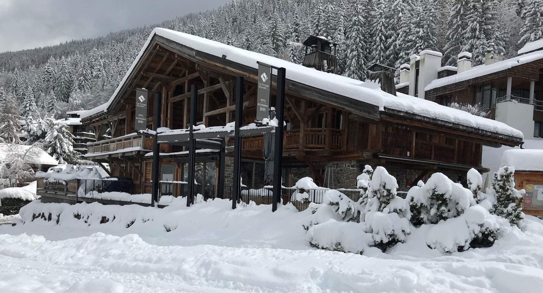 Hôtel Les Servages d'Armelle is a luxurious 4-star chalet-style hotel located in Les Carroz d'Arâches, near Flaine in the French Alps. Situated at the foot of the Timalets ski slope, it offers ski-in/ski-out access to the Grand Massif ski area, renowned for its exceptional snow coverage and proximity to Mont Blanc.