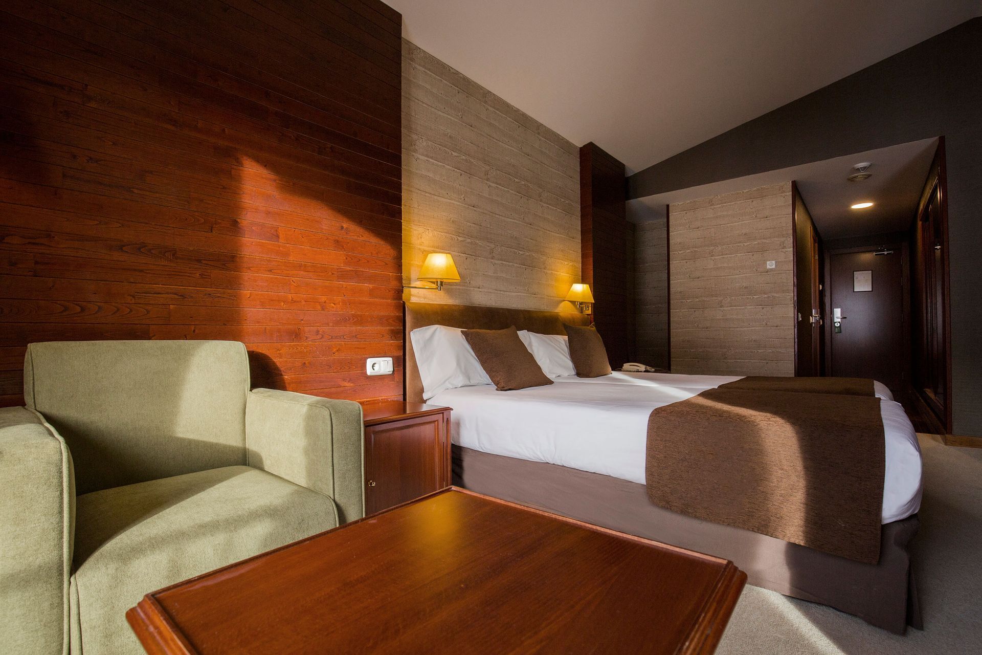 The hotel offers a contemporary atmosphere, with well-appointed rooms featuring warm, inviting décor and modern furnishings. Rooms often include amenities like flat-screen TVs, minibars, and spacious bathrooms. Some rooms even have balconies with scenic views of the surrounding mountains.