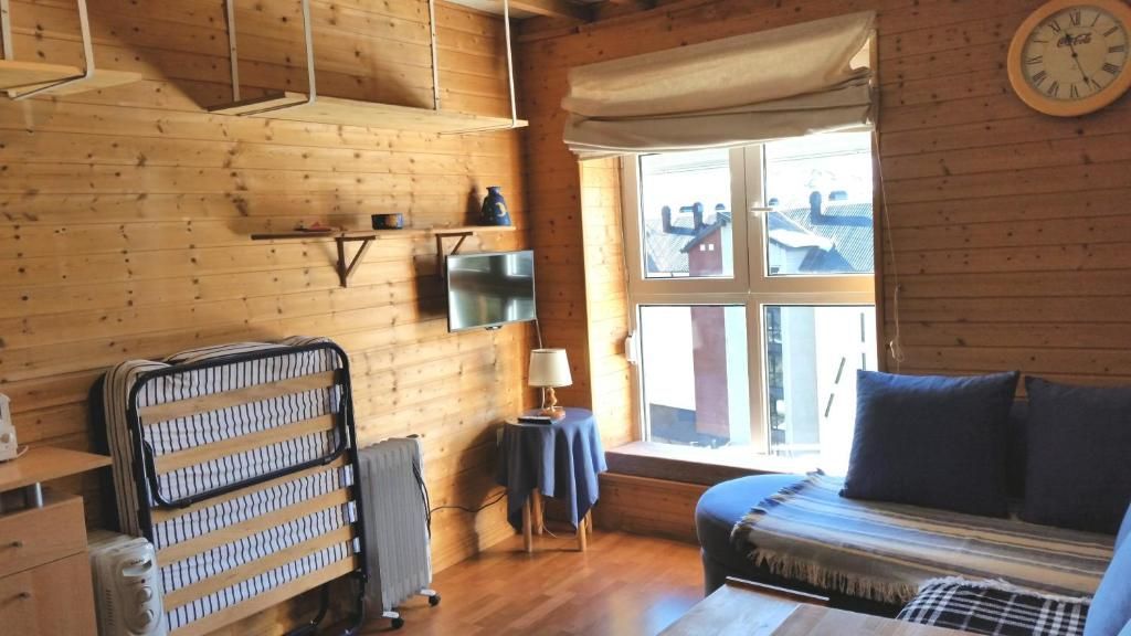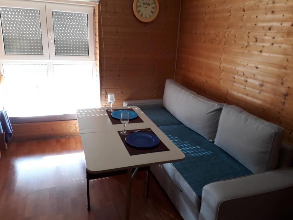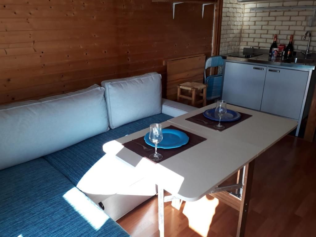 Layout: One room with a bunk bed and a sofa bed in the living area.