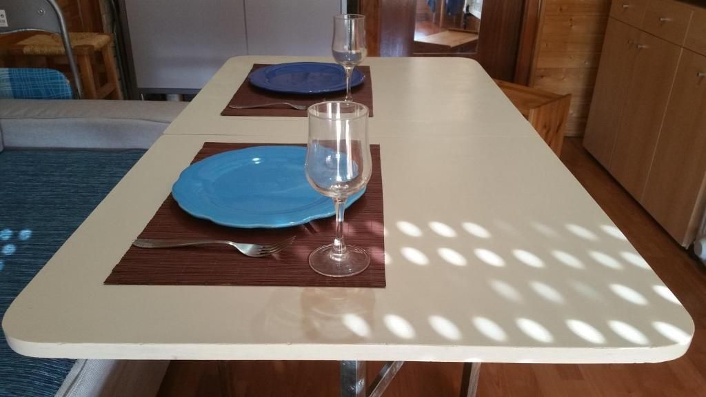Living space: Seating/dining area and flat-screen TV.